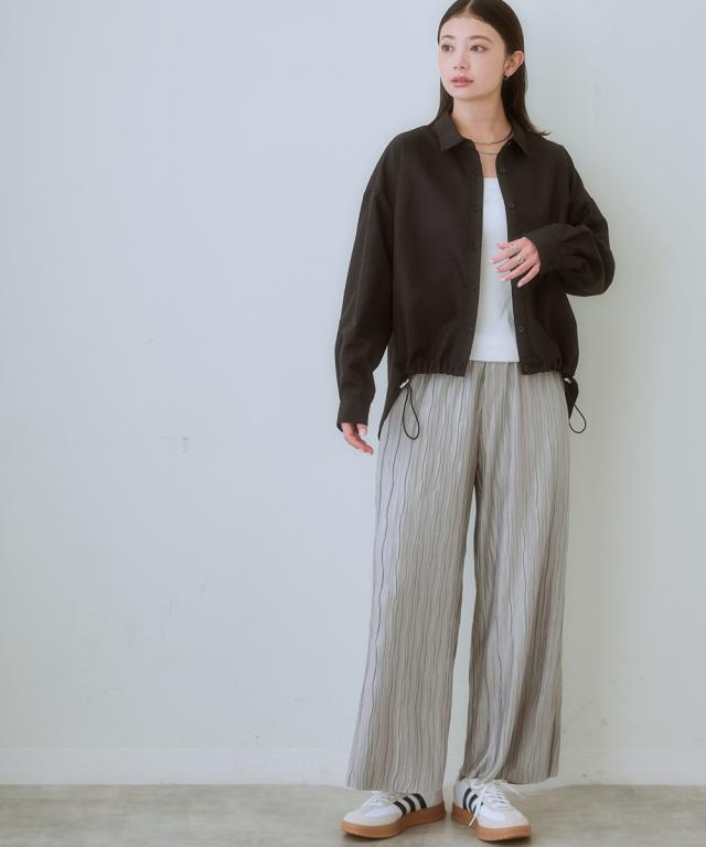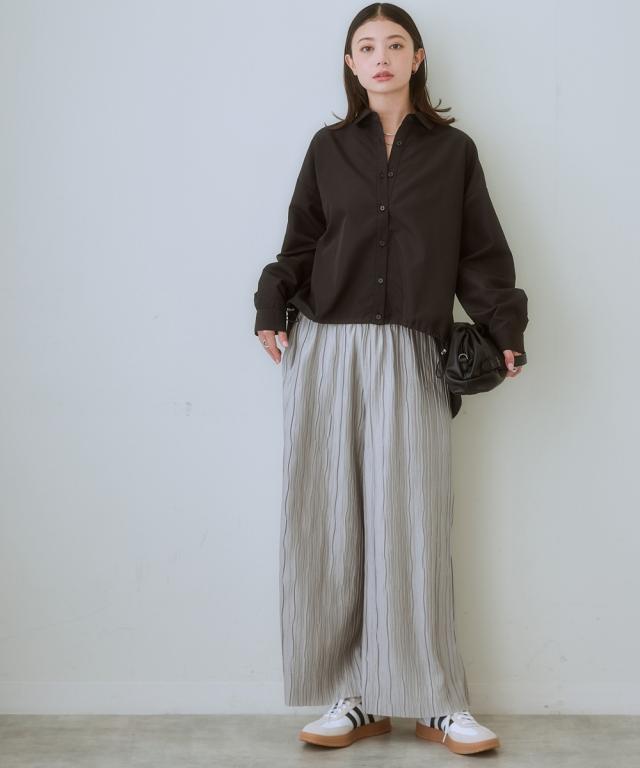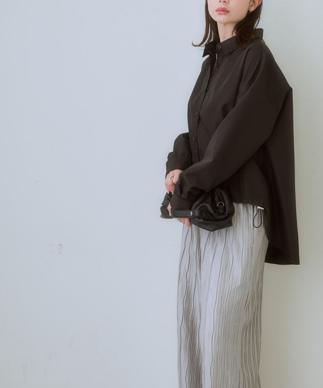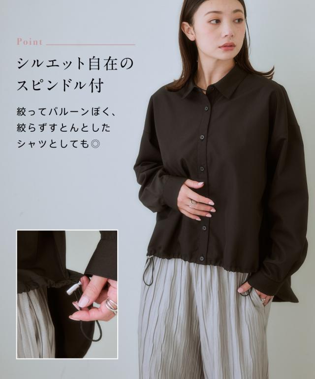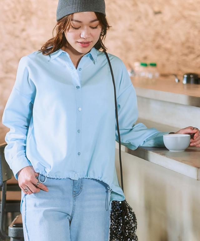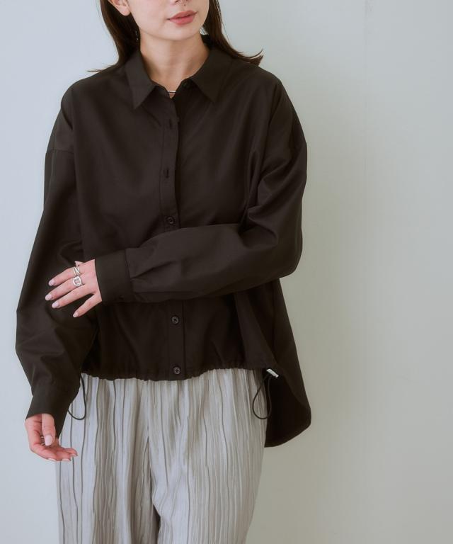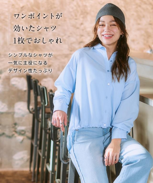 こなれ感満載の大人可愛いブラウス ■デザイン 前後差のある丈と、シャーリングで調整できる裾が、こなれ感を演出してくれます。 オフィスにも、休日のカジュアルスタイルにも合わせやすい万能アイテムです。 ■素材 カジュアルだけど、どこか大人っぽい。そんな絶妙なバランスが魅力のブラウスです。 さらっとした肌触りの良いポリエステル素材を使用しているので、着心地抜群 ■おすすめのスタイリング フロントにシャーリングのアクセントがあるのでふんわりしたシルエットのボトムも着ぶくれせずにメリハリがきいてみえます。 フロントインしているような感覚でコーデを楽しむといいですね。 カジュアルにもキレイ目にも合わせやすいシャツです。