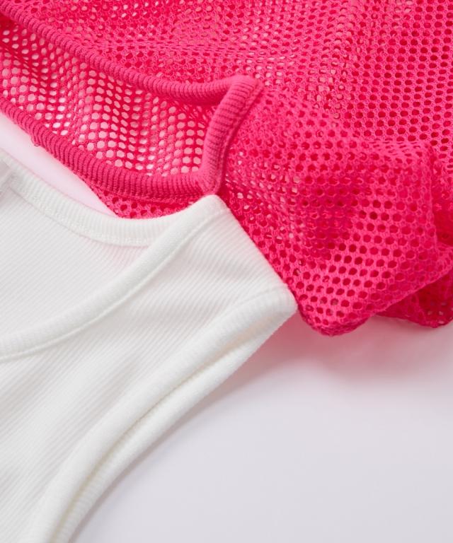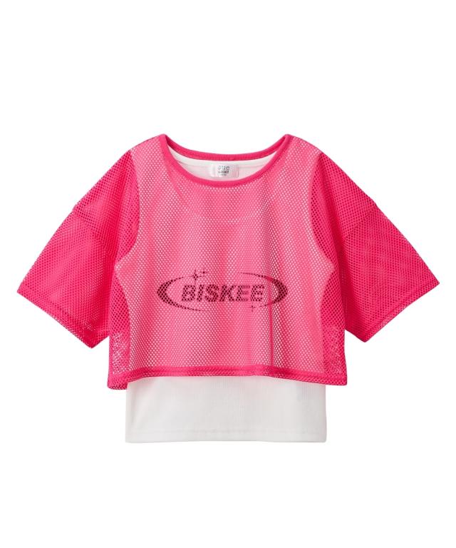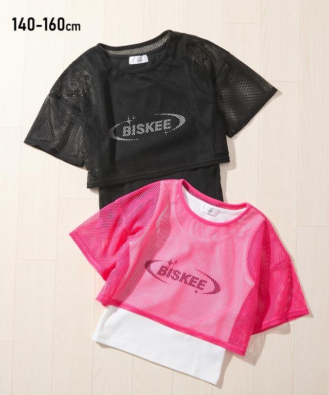 トレンド最先端! 5分袖メッシュ ドッキング クロップド丈 トップスでおしゃれジュニア服 ダンスウェア 風ロゴデザインで差をつける! ■デザイン ・今年のトレンドである透け感のあるメッシュ素材を、おしゃれなクロップド丈で仕上げました。 ・フロントに大きくあしらわれたロゴがデザインのアクセント。シンプルながらも存在感抜群で、コーディネートの主役になる一枚です。 ・まるで別々に着ているかのような、おしゃれなドッキング(レイヤード風)デザイン。インナーの無地Tシャツとメッシュトップスが一体化しているので、着るだけでバランスの取れた重ね着スタイルが完成します。 ・インナーの裾がちらりと見える丈感が、こなれた雰囲気を演出。忙しい朝もおしゃれが決まる、機能性も兼ね備えたデザインです。 ■素材 ・アウターがメッシュなので5分袖ながら暑い季節でも快適 ■おすすめのスタイリング ・ ボトムスには、ゆったりとしたカーゴパンツやワイドデニム、カラフルなトラックパンツなどをセレクト。スニーカーやキャップ、ニット帽を合わせれば、ダンスシーンやアクティブなお出かけにぴったりのストリートスタイルが完成します。 ・ミニスカートやプリーツスカート、チュールス