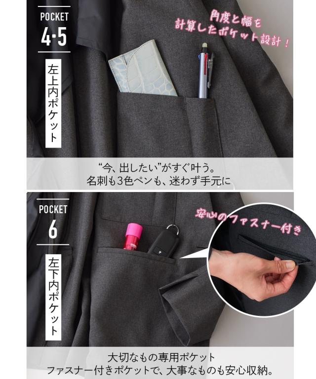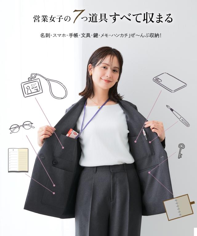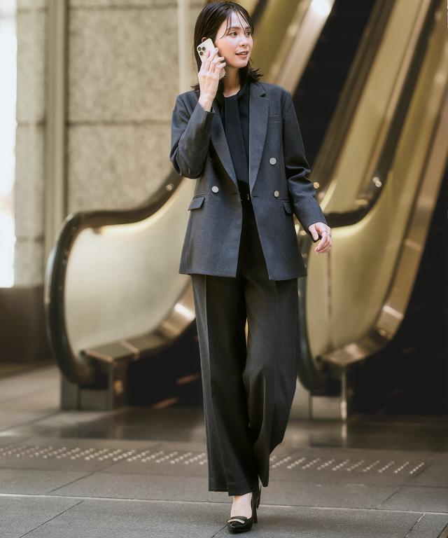 【レディーススーツ】営業女子向け七つ道具がきちんと入る最強手ぶらスーツ(ダブルブレストテーラードジャケット+ワイドストレートパンツ)