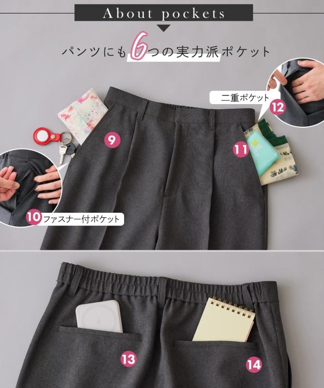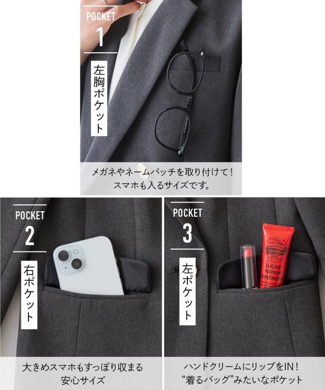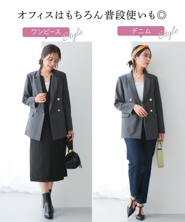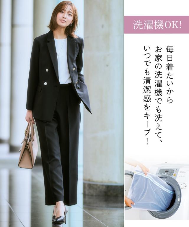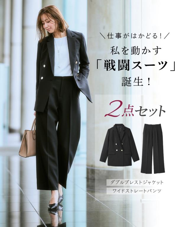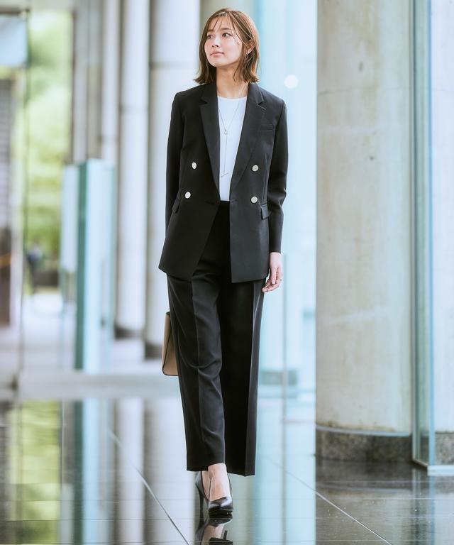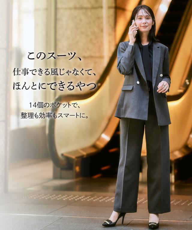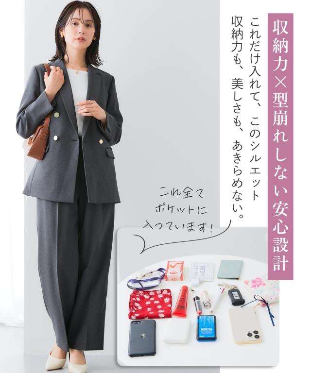 【レディーススーツ】営業女子向け七つ道具がきちんと入る最強手ぶらスーツ(ダブルブレストテーラードジャケット+ワイドストレートパンツ)