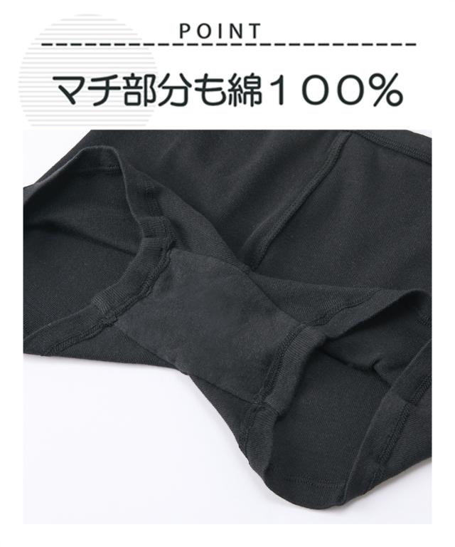 暑い季節にオーバーパンツは履きたくない! そんなお子様におすすめ!オーバーパンツの要らない綿100%黒無地1分丈ショーツ3枚組☆彡 <特徴> ■身生地は綿100% 毎日身につけるものだから、やわらかくて肌ざわり抜群の綿100%の生地にこだわりました。 ■ウエストゴムが直接肌にあたらない ゴムを身生地にくるんでいます。 だから直接ゴムが肌にあたることがありません。 ■足口ゴム無し 足口は身生地を折り返しています。 ゴムがないからはき心地快適です。 ■マチ付 綿100%のマチを付けています。 ■すべてが黒色 身生地、マチ部分がすべて黒色。 これなら汚れも気にならないです。 ■セット組 毎日着用するものだから、洗い替えに便利な3枚組でお届けします。 同シリーズの黒無地ショーツも販売しています。