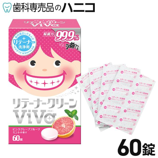 リテーナークリーンViva(美歯ビバ)60錠 /箱 除菌力99.9% リテーナー専用洗浄剤 歯科専売品 つけ置き5分 タンパク質汚れにおい除去 送料無料