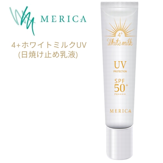 | 商品名 | メリカ 4+ホワイトミルクUV 日焼け止め乳液 30g(SPF50+ PA++++) JAN:4571147090354 |