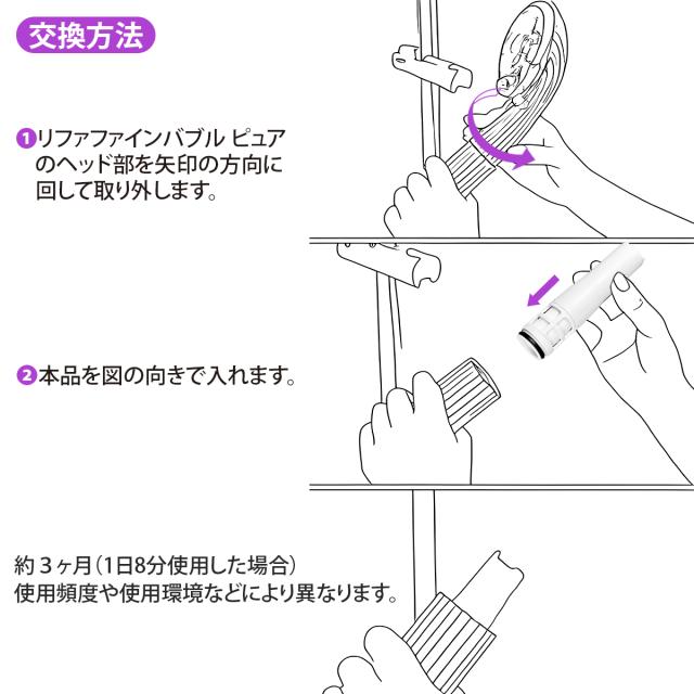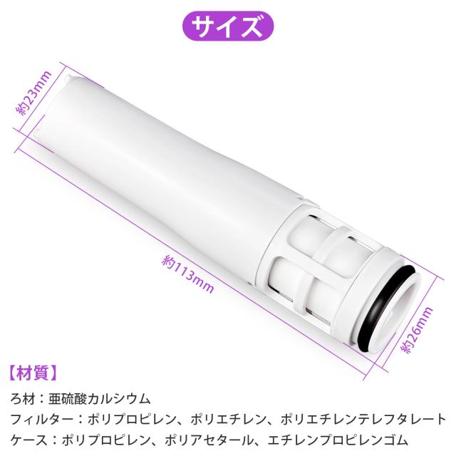 ●『リファ ファインバブル ピュア カートリッジ 対応の互換カートリッジ(ReFa PURE CARTRIDGE対応品)』 2層構造で水中の残留塩素や汚れを取り除き水を綺麗な状態に保ちます。 ● 【材質】br > ろ材:亜硫酸カルシウム フィルター:ポリプロピレン、ポリエチレン、ポリエチレンテレフタレート ケース:ポリプロピレン、ポリアセタール、エチレンプロピレンゴム ●【浄水能力】残留塩素をしっかり除去、素肌・髪にやさしい。 ●【除去できる物質】フケ・カユミ・肌アレ・乾燥肌の原因となることもある「遊離残留塩素」を繊維状活性炭のフィルターでしっかり除去。 ●【交換目安】約3ヶ月(1日8分使用した場合)使用頻度や使用環境などにより異なります。 ご注意: 1.ご使用の際はシャワー水の温度をあらかじめ適温(推奨使用水温5〜45℃)に調節してからお使いください。高温のお湯が出て、やけどをする恐れがあります。 2.カートリッジを分解したり、中身を取り出したりしないでください。 3.小さなお子様の手の届くところやペットの近くで保管しないでください。 4.飲用には使用しないでください。 5.使用中または使用後、肌や目に赤み、はれ、かゆみなどの異常があらわれたときは使用を中止し、医師に相談してください。 6.近隣で水道工事をしていて赤水などが出ているときは使用しないでください。故障や目詰まりの原因となります。 7.上水道以外では使用しないでください。 ※購入検討商品に関してご不明な点やご不安をお持ちのお客様は、ご購入前にお問い合わせください。 |