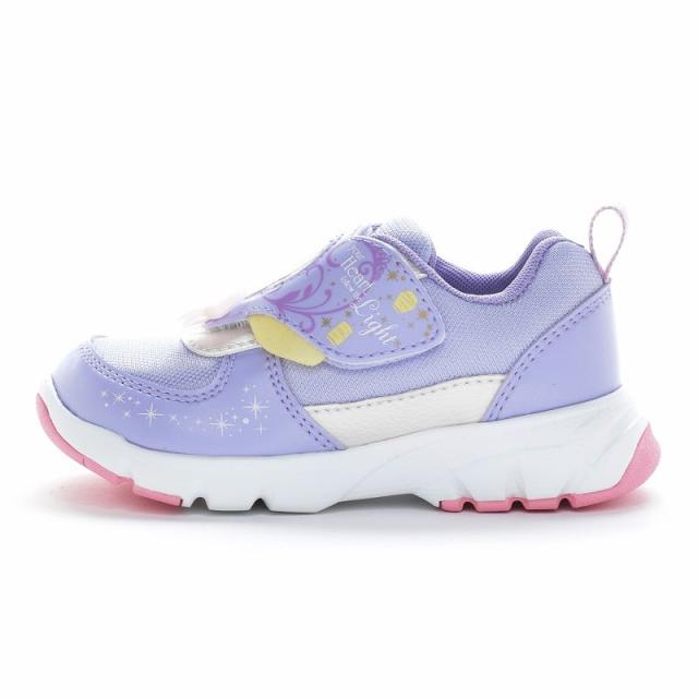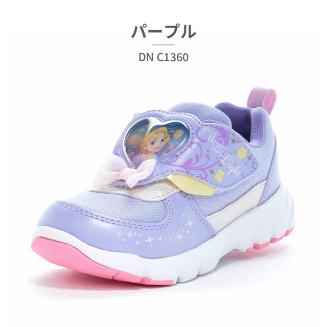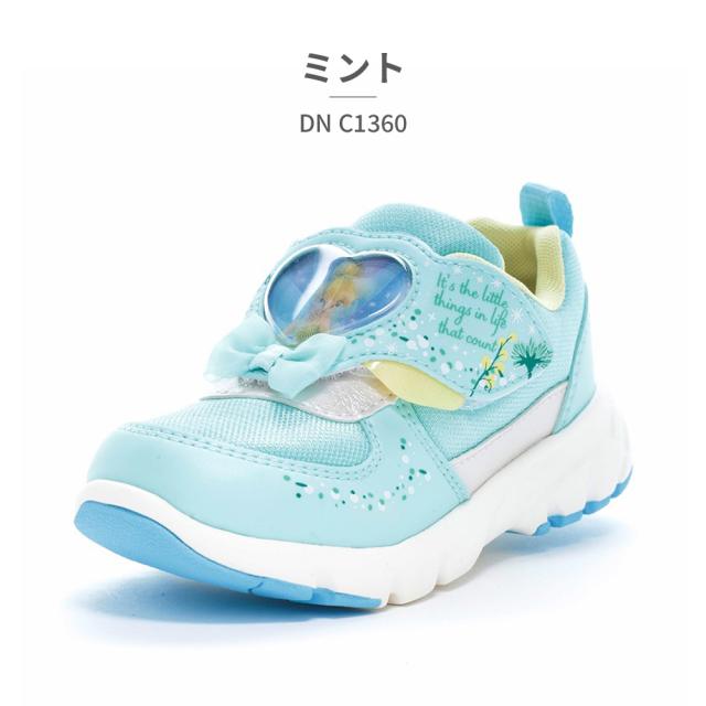 ディズニープリンセスのキッズシューズです。通園をはじめ、外遊びや運動、お出かけなど、マルチに履いていただけます。甲バンドのキャラクターはレンチキュラー仕様になっており、見る角度を変えるとキャラクターの表情が変わります。甲バンドのリボンもポイントです。パープルはラプンツェル、ミントはティンカーベルのデザインです。【洗えるインソール】足裏になじみ、取り出して洗濯ができるので靴内を清潔に保てる中敷きです。【Ag+抗菌防臭】銀イオンの抗菌作用でにおいのもととなる菌の増殖を抑制し、防臭効果を発揮します。