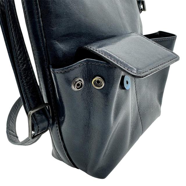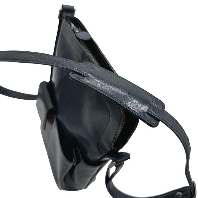 外装:片マチフロントポケット×1、片マチ携帯電話ホルダー×1、ファスナー式バックポケット×1、ショルダーストラップ 92cm〜153cmに長さ調節可能