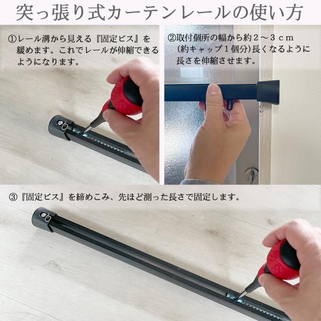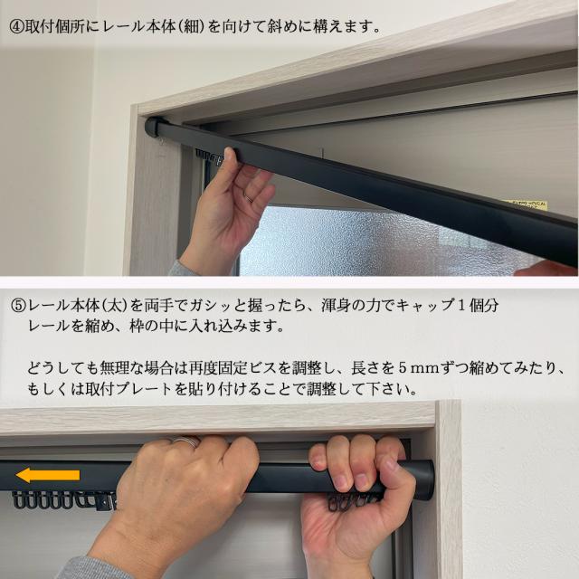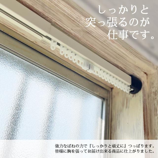 突っ張り式カーテンレール (L約104-150cm) 強力バネ仕様 白 黒 ホワイト ブラック 簡単設置 インダストリアル テンション 伸縮 新生活 1人暮らし 窓 勝手口 玄関 目隠し 間仕切り 強力つっぱり