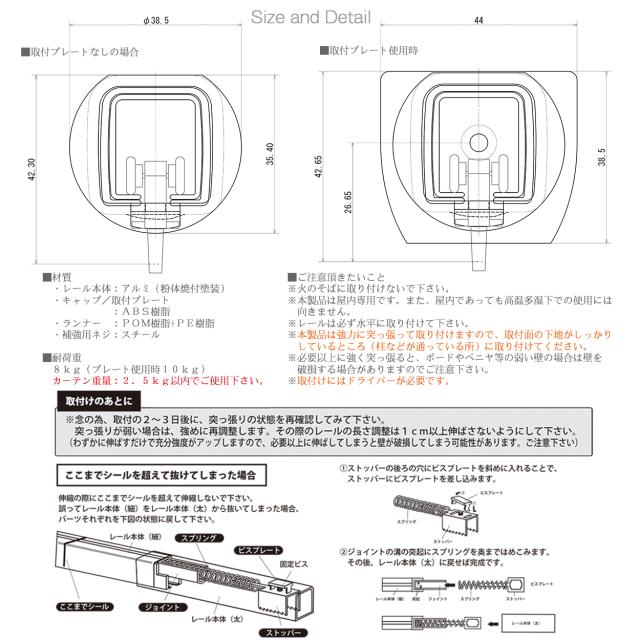 ※当商品はカーテンレールです。カーテン重量は2.5kg以内でご使用下さい。