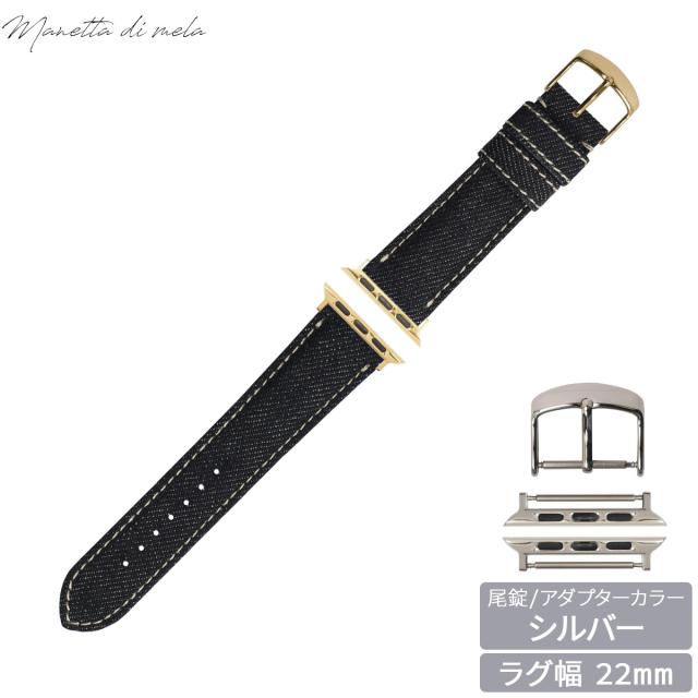 マネッタ ディ メーラ Manetta di mela アップルウォッチ Apple Watch 替えバンド ベルト メンズ レディース 岡山デニム 22mm ノンウォッシュ ホワイトステッチ/シルバー EDA-IWS22