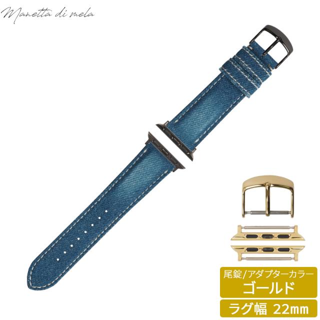 マネッタ ディ メーラ Manetta di mela アップルウォッチ Apple Watch 替えバンド ベルト メンズ レディース 岡山デニム 22mm クラッシュ ホワイトステッチ/ゴールド EDCA-IWG22