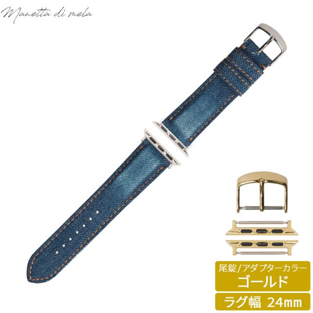 マネッタ ディ メーラ Manetta di mela アップルウォッチ Apple Watch 替えバンド ベルト メンズ レディース 岡山デニム 24mm クラッシュ オレンジステッチ/ゴールド EDCA-IOG24