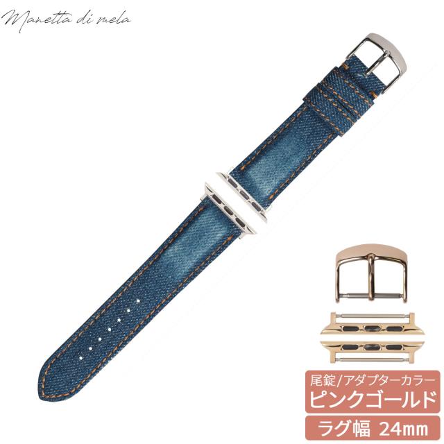マネッタ ディ メーラ Manetta di mela アップルウォッチ Apple Watch 替えバンド ベルト メンズ レディース 岡山デニム 24mm クラッシュ オレンジステッチ/ピンクゴールド EDCA-IOP24