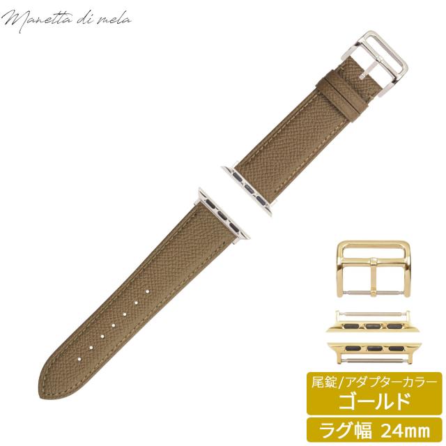 マネッタ ディ メーラ Manetta di mela アップルウォッチ Apple Watch 替えバンド ベルト メンズ レディース ワープロラックス カーフレザー 24mm サンドエトゥープ/ゴールド EWB-T-G24
