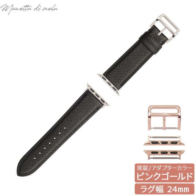 マネッタ ディ メーラ Manetta di mela アップルウォッチ Apple Watch 替えバンド ベルト メンズ レディース ワープロラックス カーフレザー 24mm クロームブラック/ピンクゴールド EWB-A-P24