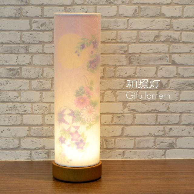 コンパクト盆提灯 和照灯 1基 コードレス 電池式 LED 高さ26cm 直径8cm 月と花柄 025 インテリア提灯 おしゃれな提灯 岐阜ちょうちん 和風行灯 現代風 モダン 二重張り