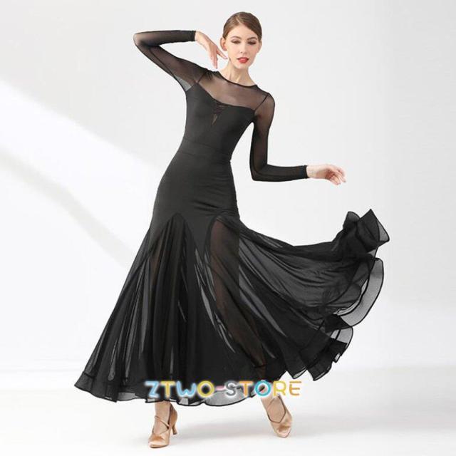 社交ダンスドレスレディース モダンダンス ロング丈ワンピース 長袖 レッスン着 フラメンコ ワルツ専用ドレス スタンダード練習着