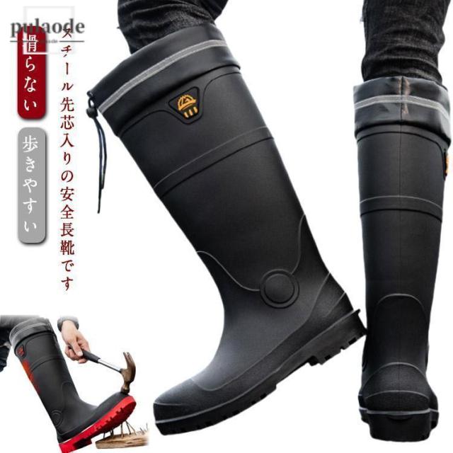 防水 レインブーツ アウトドア ワークブーツ 長靴 先芯あり 鋼製 メンズ 男性 安全靴 履き口カバー 滑らない セーフティーブーツ 長靴 雨 芯入り