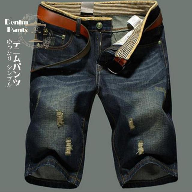 【キーワード】爆売中 デニムパンツ メンズ ジーンズ ハーフ丈 ポケット ゆったり ハーフパンツ シンプル ショートパンツ ジーパン ウォッシュ