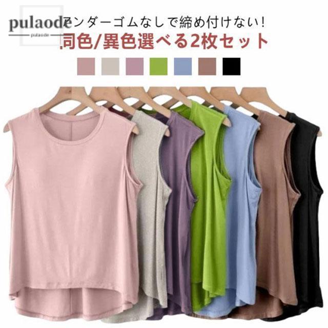 2枚セット 締め付けない カップ付き タンクトップ アンダーゴムなし レディース 夏 ゆったり ブラトップ ルームウェア 部屋着 背中 ゴムなし ゴム