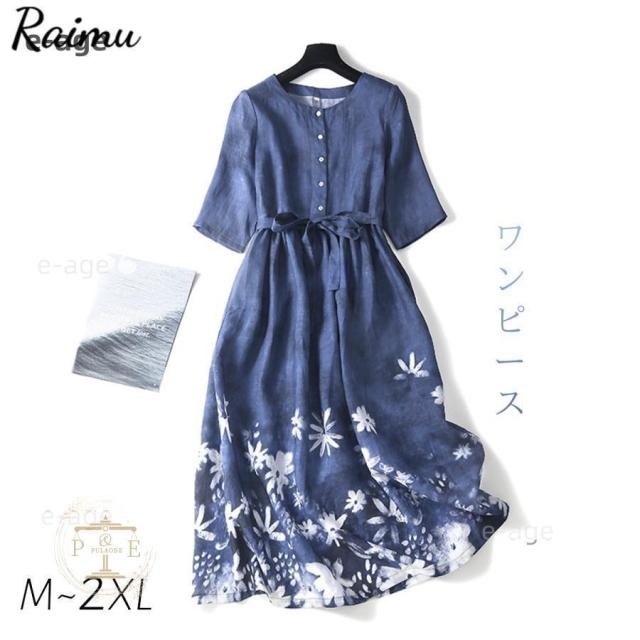ワンピース 夏 レディース ロングワンピース プリーツワンピース プリーツ ロング プリントリゾート コットン リネン 綿麻 麻 可愛い きれいめ Aライン フレア 大人 上品 半袖 大きいサイズ 森ガール ゆったり 春 秋 シンプル カジュアル ナチュラル