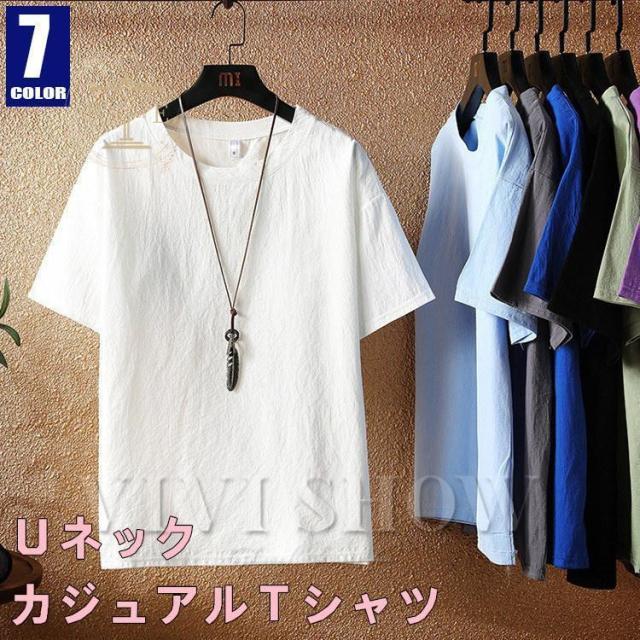 tシャツ メンズ リネン 麻Tシャツ 無地Tシャツ クルーネック 薄手 涼しい 通気性 夏 サマー
