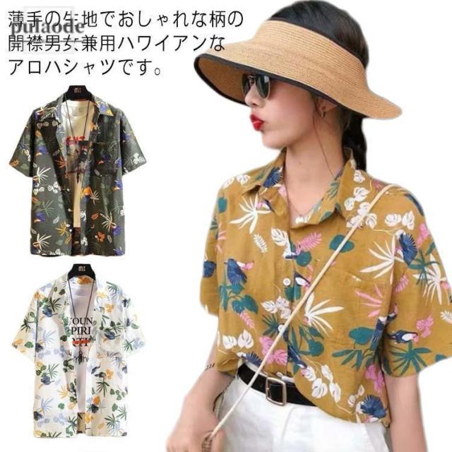 アロハシャツ レディース メンズ トップス 夏 シャツ トップス ダンス 衣装 ヒップホップ コスチューム 半袖 ハワイシャツ ボタニカル アロハ 薄