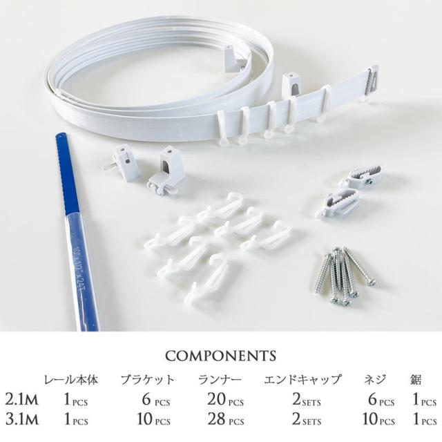 ■セット内容 2.1m/レール1本 ブラケット6個 ランナー20個 キャップ2セット ネジ6個 ノコギリ1本