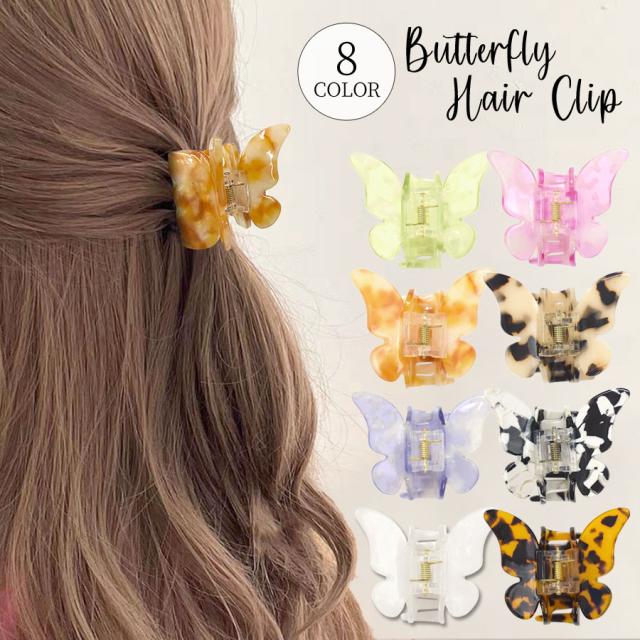 【ヘアクリップ バタフライ ハーフアップ ミニ 小さめ バンスクリップ 蝶 ちょうちょ レディース ヘアアクセサリー マーブル べっ甲風 アセテート アセチ パピヨン おしゃれ かわいい 大人 しっかり 夏 クリア 髪留め 髪飾り ミニサイズ 女性】
