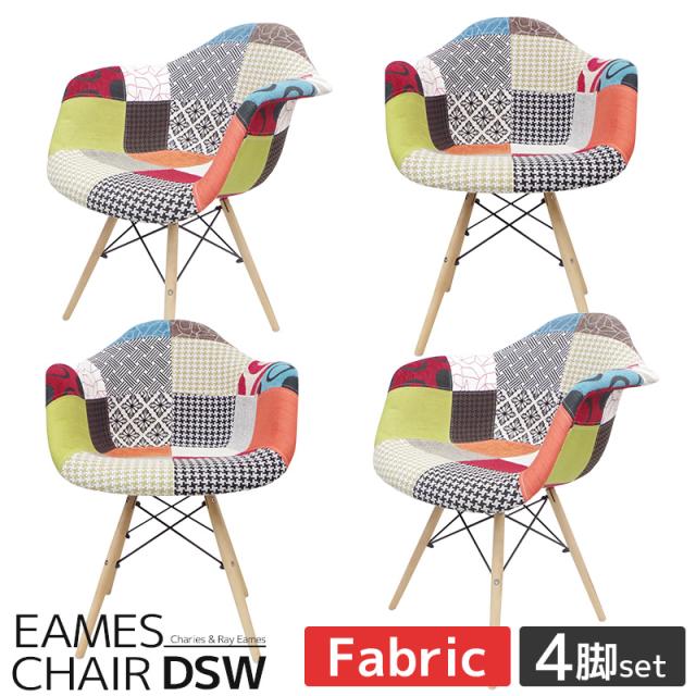 イームズ チェア パッチワーク DAW Eames アームシェルチェア 木脚 デザイナーズ 家具 ダイニングチェア 北欧テイスト ファブリック パッチワーク ミックス 4脚セット【EM-10】