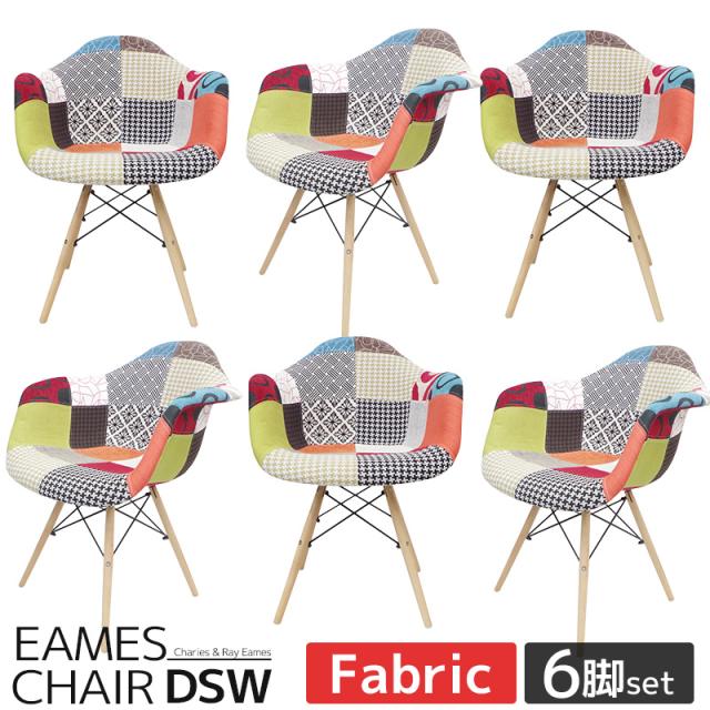 イームズ チェア パッチワーク DAW Eames アームシェルチェア 木脚 デザイナーズ 家具 ダイニングチェア 北欧テイスト ファブリック パッチワーク ミックス 6脚セット【EM-10】