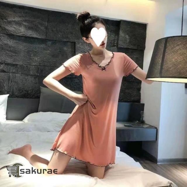 商品名:ルームウェア カップ付き ワンピース パジャマ 半袖 部屋着 寝巻き 快適 やわらかい ロング かわいい
