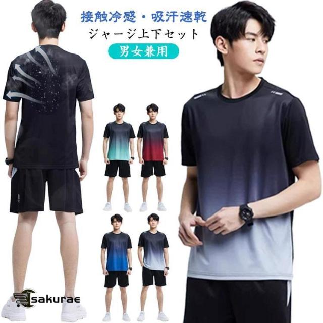メンズ 半袖 上下セット 吸汗速乾 接触冷感 セットアップ レディース スポーツウェア ストレッチ ランニングウェア ジム ヨガウェア