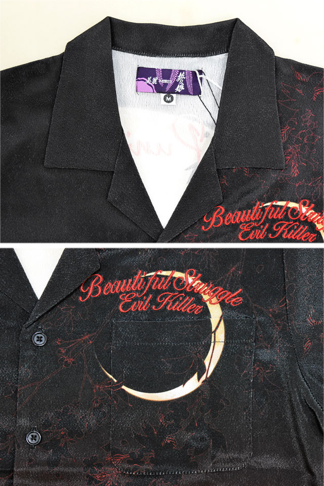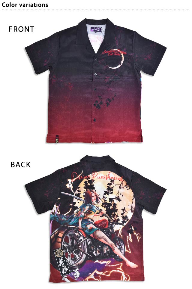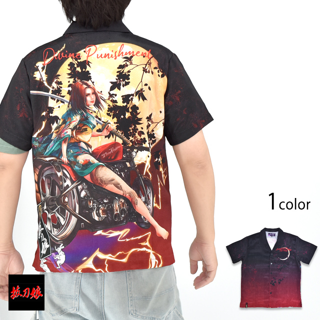 抜刀娘 昇華転写 闇半袖シャツ 抜刀娘 252959 和柄 和風 アロハシャツ ハワイアン バイク 着物