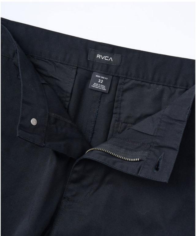 コットンポリエステルのツイル生地を使ったショートパンツ。膝が見えるハーフ丈で少しキレイめな印象。フロントポケットにはコインポケットを、ヒップポケット部分にワンポイントでRVCA のネームタグを施したシンプルデザイン。レギュラーフィットなので、シャツと合わせたり普段のコーディネートに取り入れやすいシルエットです。