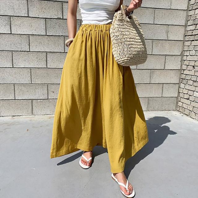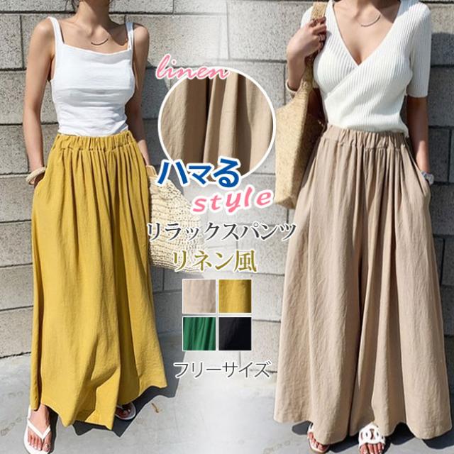 リラックスパンツ 春新作 大きいサイズ ガウチョパンツ さら軽 綿麻 コットンリネン スカーチョ ロングパンツ ゆったり 体型カバー 大人抜け ウエストゴム おしゃれ ボトムス 日常 無地 送料無料