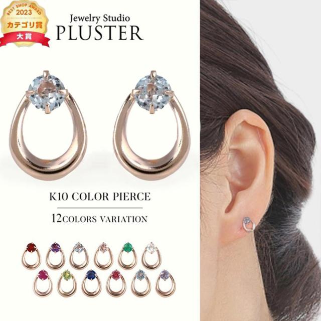 色鮮やかに輝く 誕生石ピアス 。雫のモチーフとの組み合わせは、華やかで、お守りとして身につけても。誕生日のギフトや、記念日の贈り物に。10金素材で金属アレルギーに対応しているので、お肌に優しく安心です。