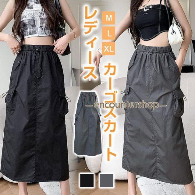 マキシスカート ロングスカート レディース カーゴスカート ミリタリー 無地 ボトムス スカート マキシ 膝下 ひざ下 ゆったり ウエストゴム