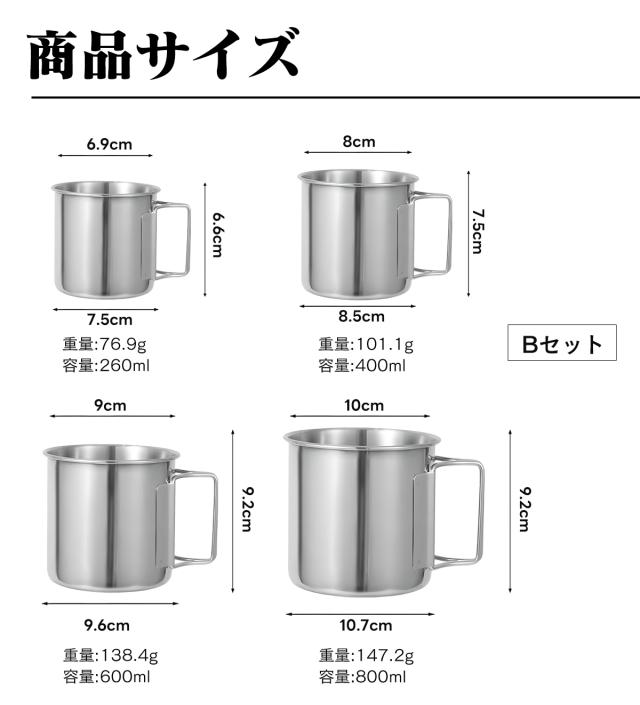 【送料無料】ステンマグカップ 4点セット 大容量 ステンレス製 直火OK アウトドア カップ マグカップ キャンプ 登山 シングルマグ キャンプ用品 収納 持ち運び 携帯用 コーヒー おしゃれ 蓋 ソロキャンプ 湯沸かし 野外料理 釣り 登山 登山コーヒー