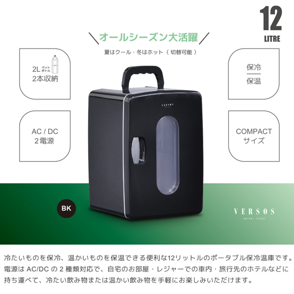 保冷温庫 12L VERSOS ベルソス VS-CW012ブラック 保冷庫 冷温庫 保冷保温ボックス ペルチェ式 AC/DC 2電源 家庭 車載対応 コンパクト