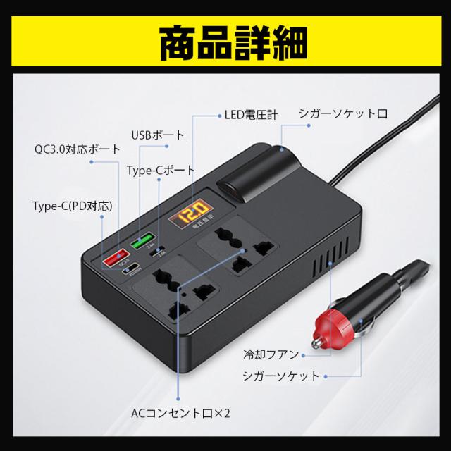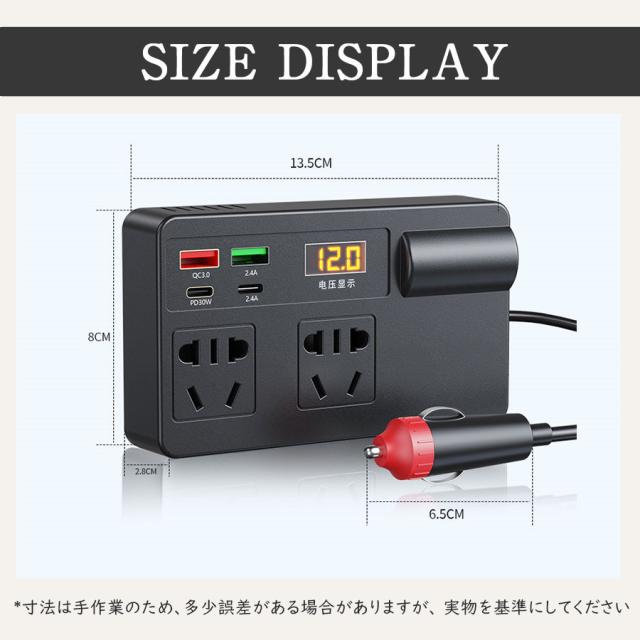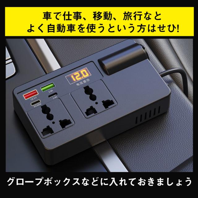 車 発電機 インバーター 正弦波 12V 24V AC DC 車載 シガーソケット USB 9ポート車内 160w 高出力 小型 コンセント 汎用 直流 交流 変換 防災 旅行