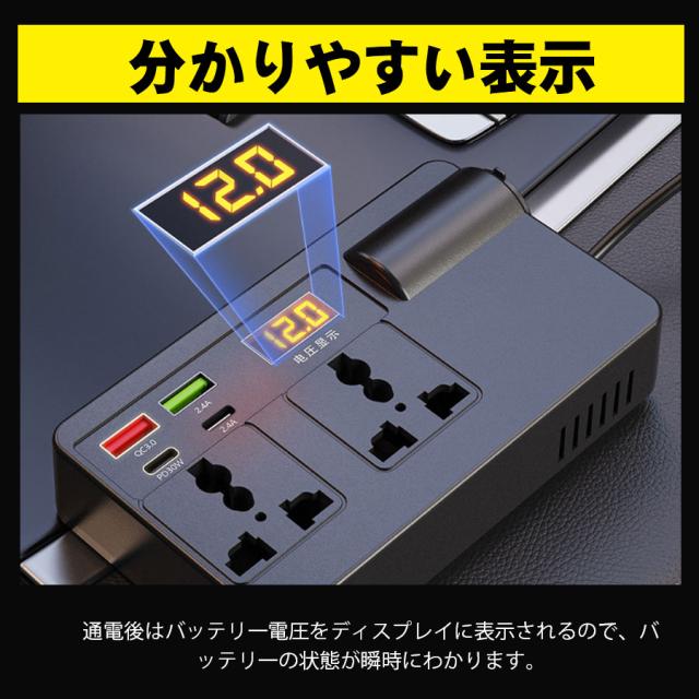 カーインバーター シガーソケット コンセント インバーター USB 災害 非常時 車載充電器 12V 24V ACコンセント 直流