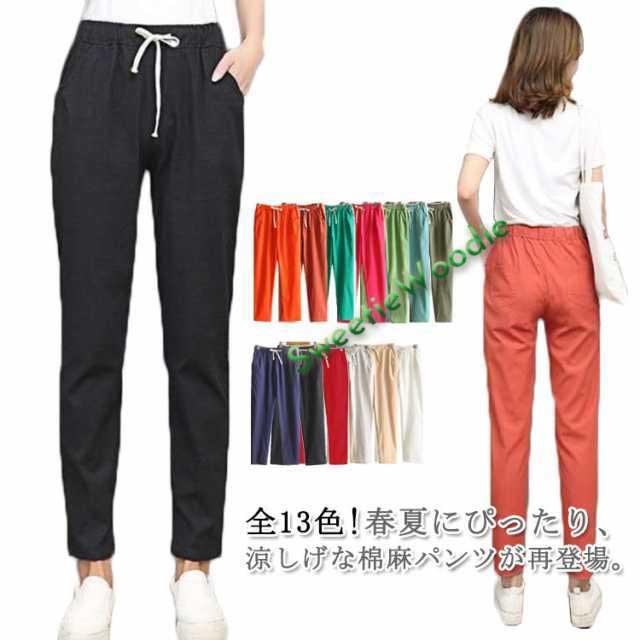 パンツ テーパードパンツ 送料無料 レディース 夏 涼しい リネン パンツ リネンパンツ 綿麻パンツ レディース 9分丈パンツ ウエストゴム 綿麻 パンツ 綿混 リネン 九分丈 薄手 無地 ポケット付き 薄手パンツ 春 夏 カジュアル きれいめ ナチュラル 軽い 無地 大きサイズ