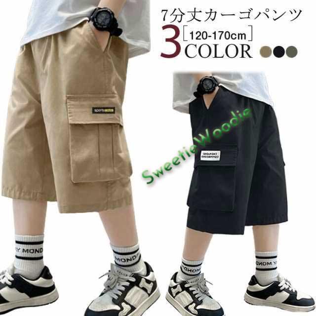 ハーフパンツ 子供服 男の子 7分丈 パンツ キッズ ジュニア カーゴパンツ ボトムス 七分丈 夏 半ズボン イージーパンツ 小学生 おしゃれ 薄手 カジュアル ウエストゴム 子ども 幼稚園 小学校 公園 散歩 120 130 140 150 160 170cm