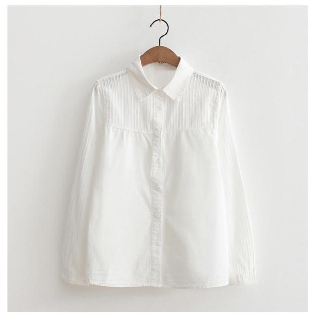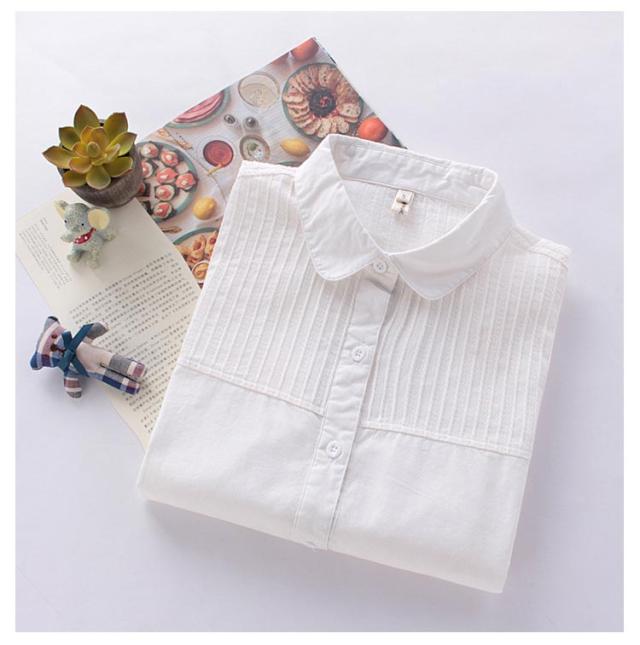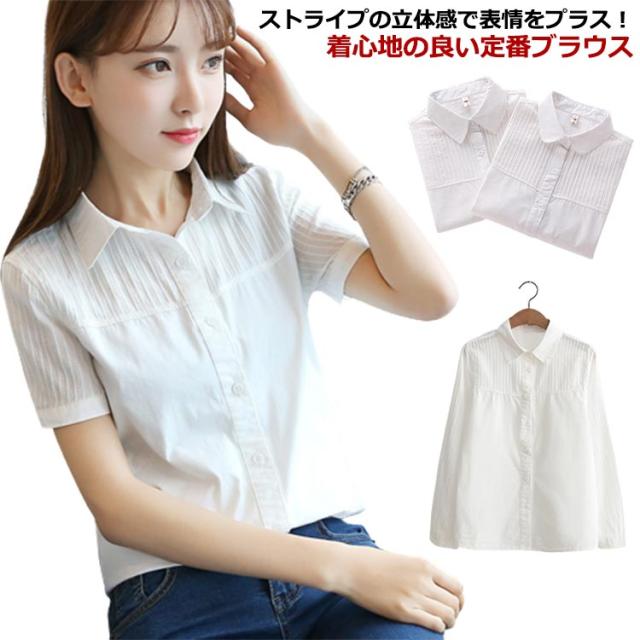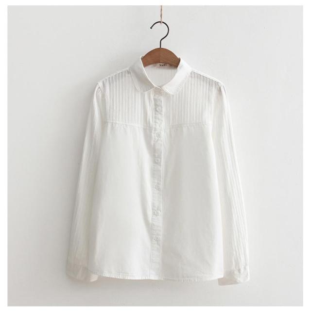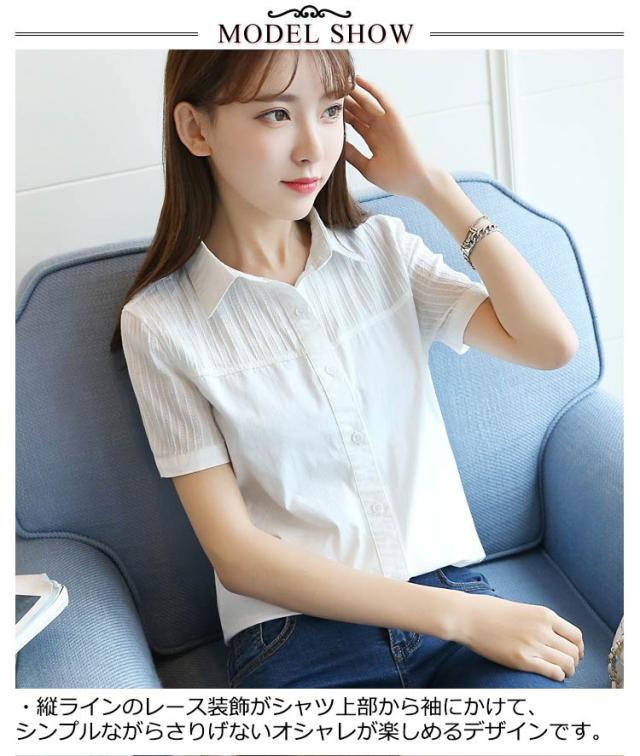 シャツ レディース ブラウス 綿 コットン 半袖 長袖 丸襟 トップス オフィス カジュアル 襟付き 森ガール 通勤