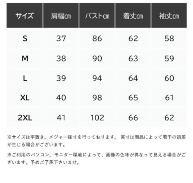 | サイズについての説明 | 【サイズ】画像を参照お願い致します。 ※上記サイズは平置き実寸になります。 サイズ表の実寸法は商品によって1-3cm程度の誤差がある場合がございます。 |