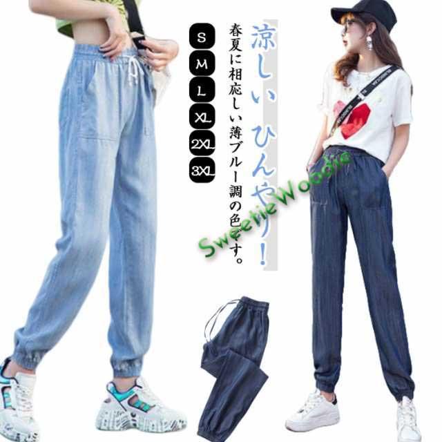サルエルパンツ ジョガーパンツ きれいめ レディース 涼しい ひんやり テーパードパンツ ジョガーパンツ 夏 ウエストゴム 冷感 パンツ ボトムス ゆったり ジーンズ 大きいサイズ 体型カバー デニム調 裾ゴム 夏用 清涼感 冷感素材