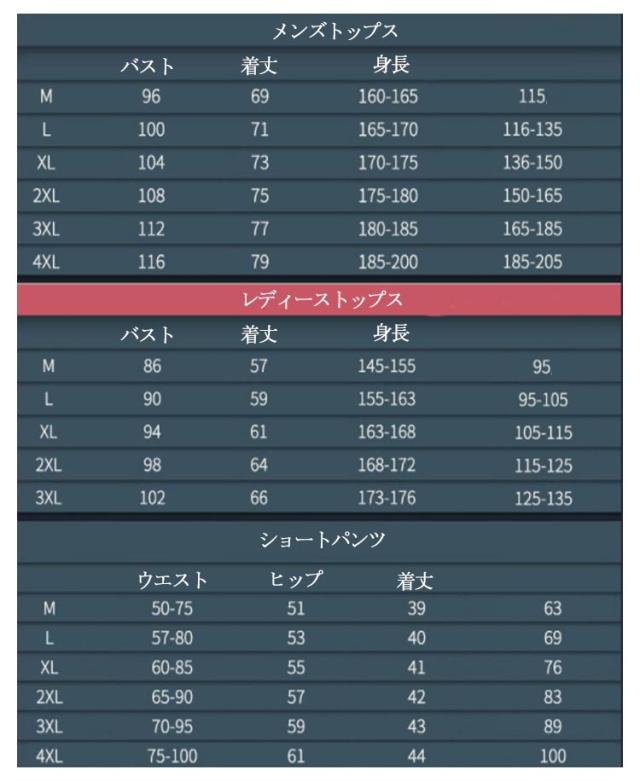 | サイズ | M L XL 2XL 3XL 4XL |