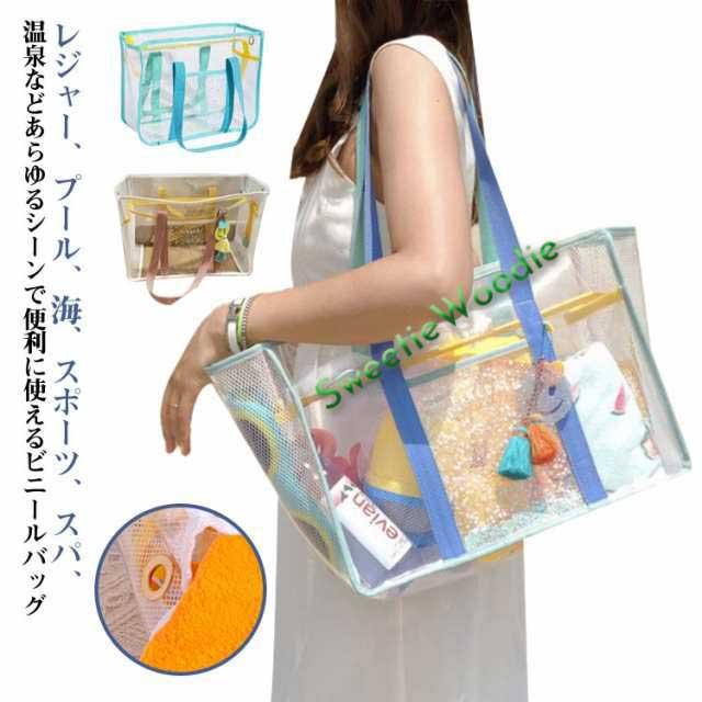 プールバッグ 大人 クリアバッグ ビーチバッグ クリア 透明 トートバッグ メッシュ ハンドバッグ 大容量 マチ アウトドア スポーツ 肩がけバッグ 海 ビーチ 水泳 温泉 浴室 砂遊び 出張 旅行 バッグ 鞄 女の子 男の子 子供 レディース 温泉