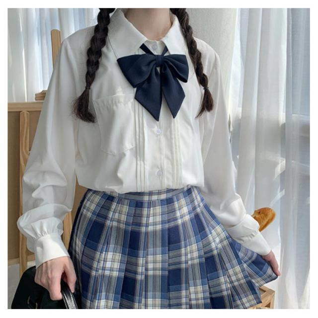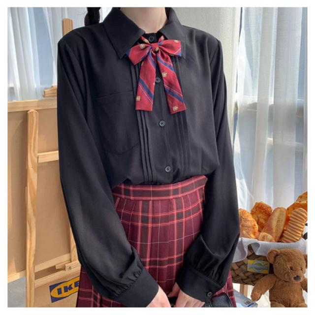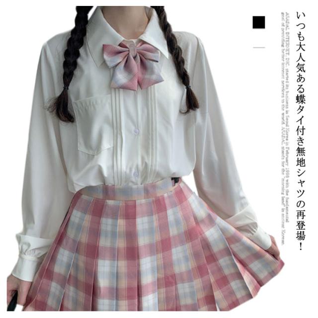 無地シャツ JK制服 ブラウス レディース 白シャツ シャツ 黒シャツ 送料無料 送料無料 蝶タイ 春 リボンタイ 通学 学生 秋