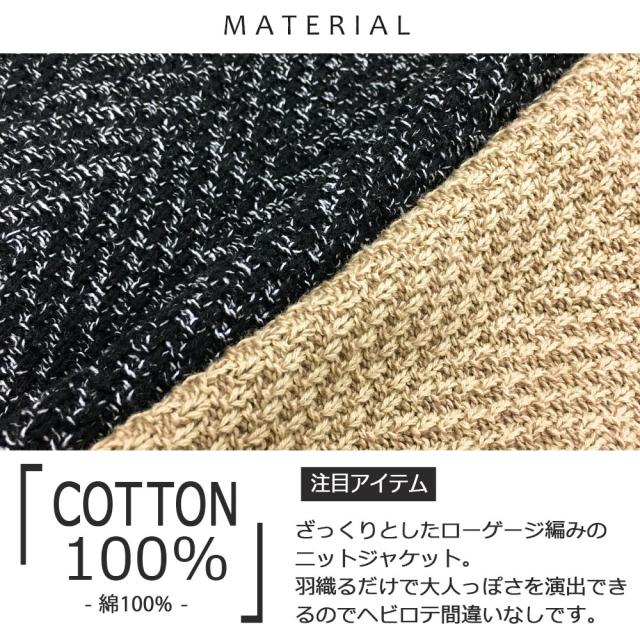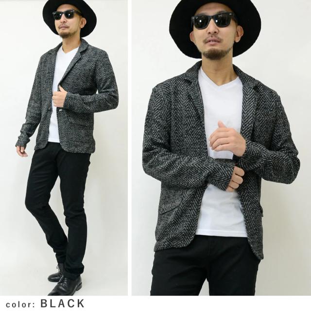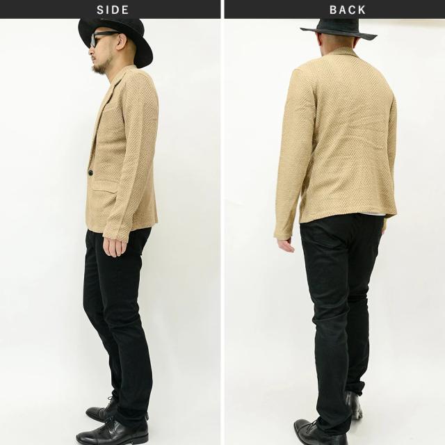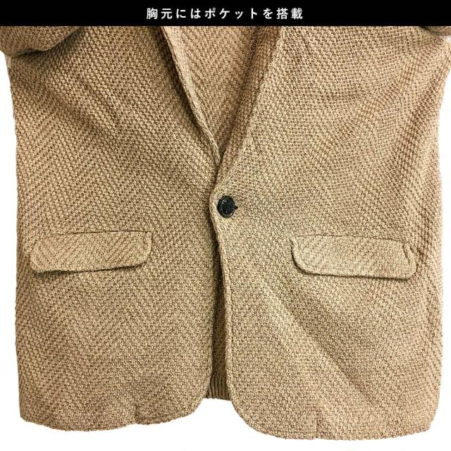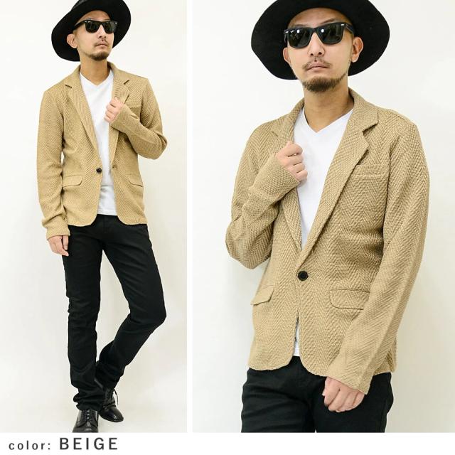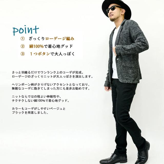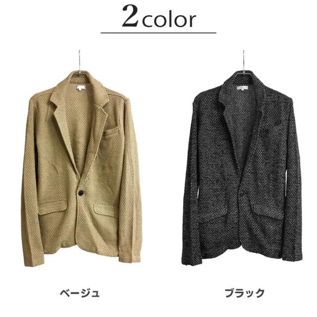 【閉店セール】メンズ テーラードジャケット 1B 1つボタン JKT 16-4854 ニットジャケット ローゲージ ヘリンボーン柄 コットン 綿100 レギュラーラペル ベージュ ブラック M L ライトアウター 春服 秋服 ローゲージニット 1B テーラードジャケット